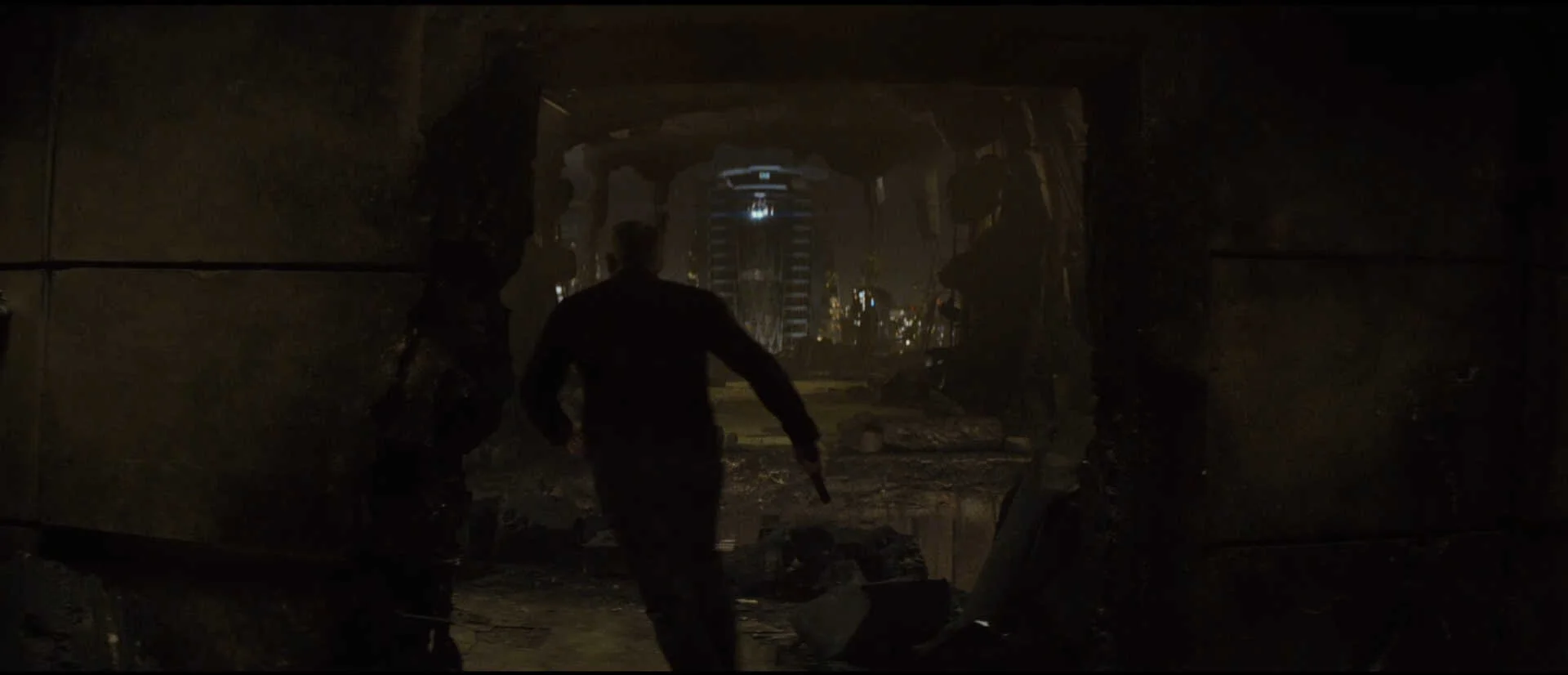 Just before I left DNEG, I helped out on another secret agent picture. The task here was to extend a shot where Bond looks up to see the bomb damage. I matched the tracked camera and framed up the hole on the upper floor.