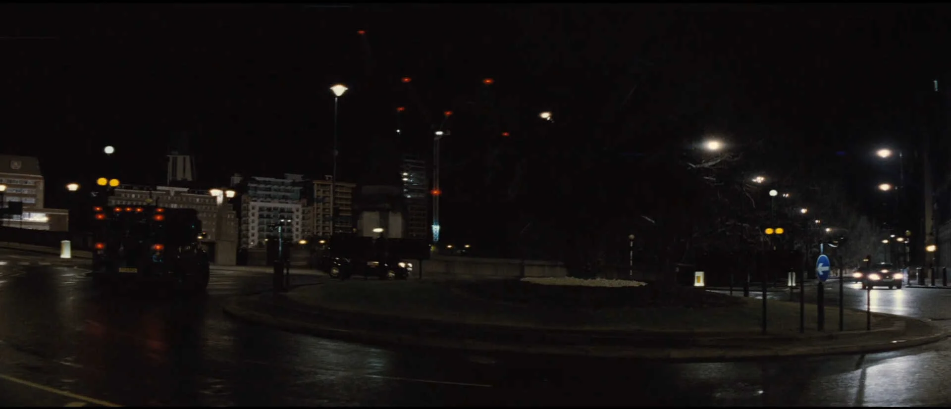 The film was shot in the summer but takes place in a wet wintery London, I replaced all the leafy green foliage with a variety of bare trees. A rewarding task as the final composite is seamless.