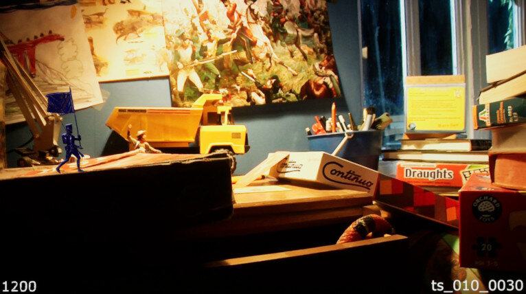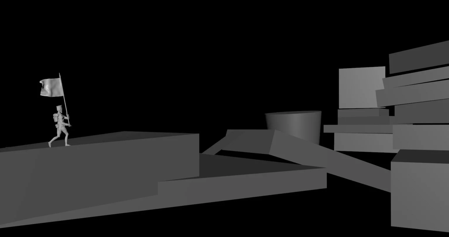 This is shot ts_010_0030 where the soldiers are marching across the desk. I tweaked the mocap to have the soldier carrying a banner. Once simulated, the banner could be imported into Unreal as a ‘geometry cache’.