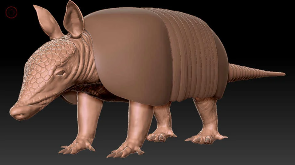 A CG Armadillo, base mesh built in Maya and the unfinished sculpt in Zbrush, a couple of days work. It was progressing well.