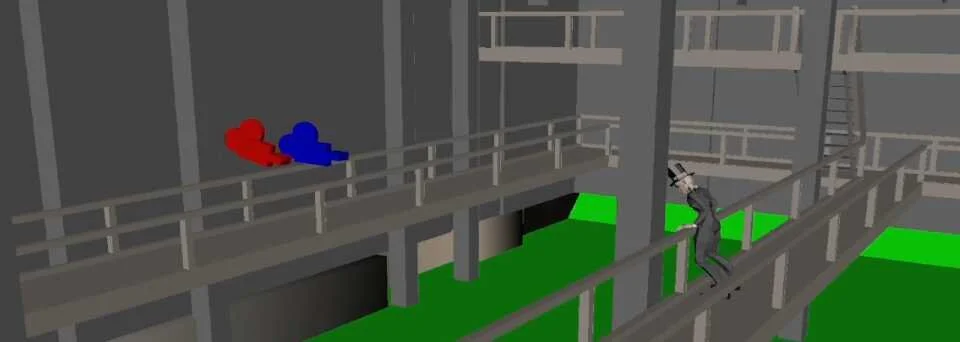 This scene was unfortunately cut from the final edit, it’s a pretty common occurrence in visualisation work. I did several tests, layouts and animation for how these walls would tumble.