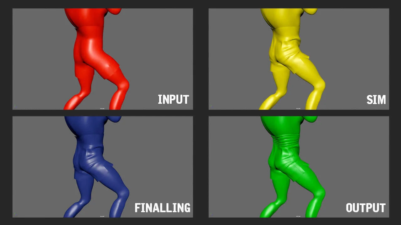 The CFX was handled using nCloth, something which I've been using for the last few years and know it's quirks and limitations. The piece acted as a guinea pig for a set of tools I've been writing to automate the cfx rig setups and creation of custom nodes and finalling.