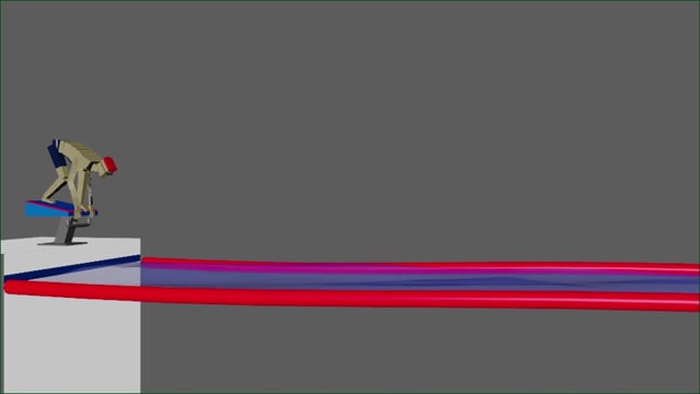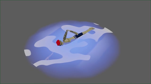 The three swimmer visualisations, I worked to create a visual language, which meant a simpler water design and reduction in scene size.