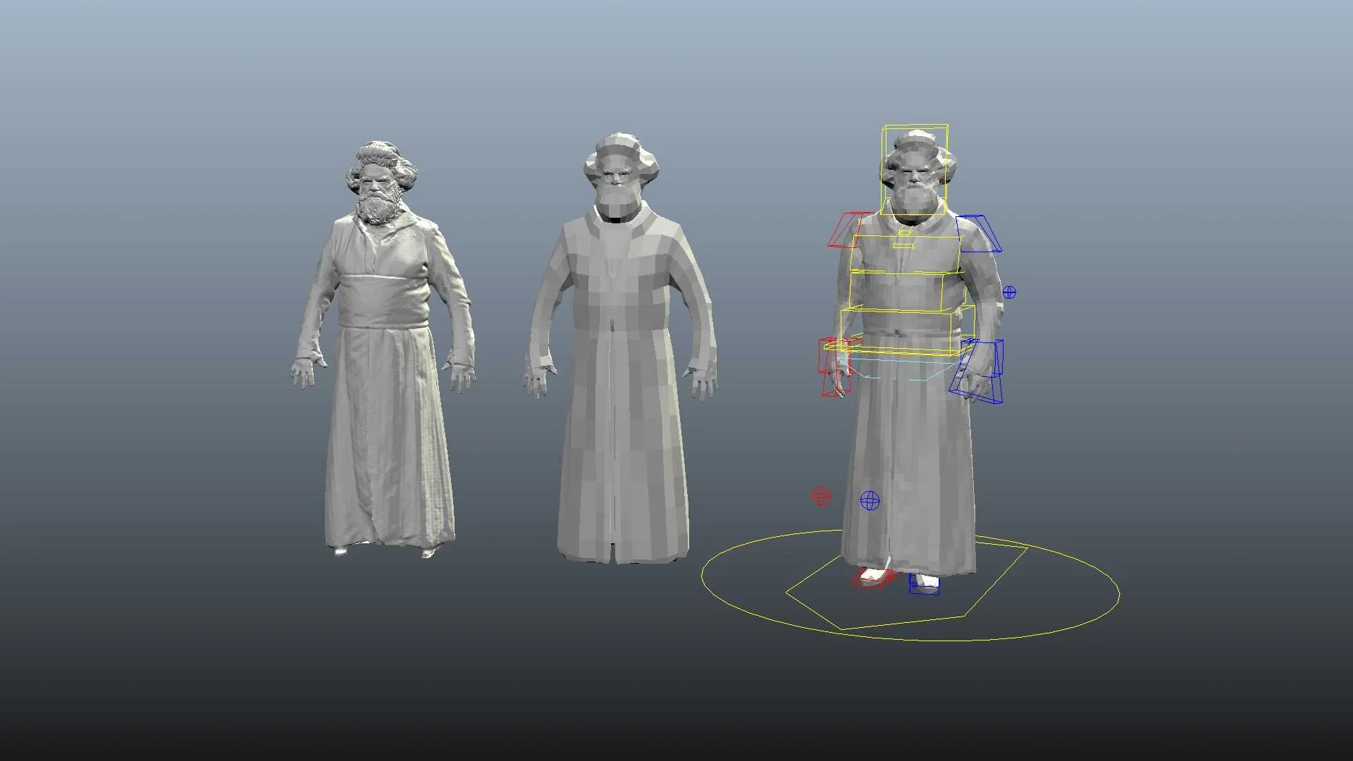 I repurposed the ‘Caine’ rig and built several CG crowd assets. Simple movement cycles were applied for the final shot.