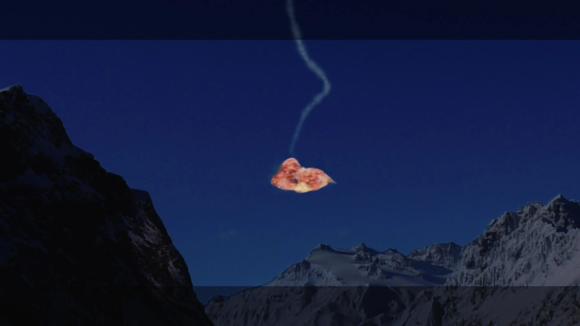 The storyboard was overlaid onto the mountain location to get a quick sense of what the shot might look like. After extensive tech visulation of the area using Google maps, it was apparent that the helicopter would be extremely small and at a high altitude in order to accomplish the graceful fall.