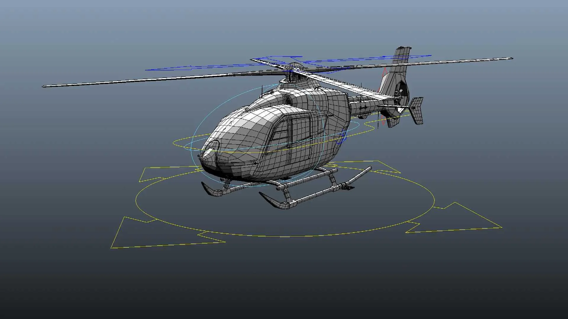 The helicopter model was an undertaking, I knew it had to be robust and match the silhouette closely but it didn’t need every surface detail as it would be small. The rig was simple, I do always enjoy working out how things can move and designing a visually pleasing rig.